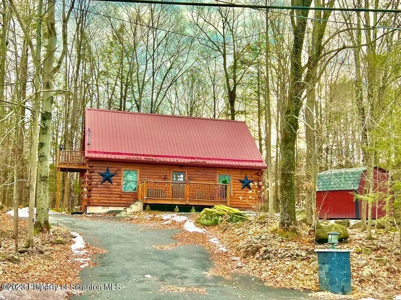 Listed by C21 Jack Ruddy Real Estate (570) 344-6724, Marieann P. Duffy-Mates (570) 468-0232: Your dream Home ''Log Cabin'' awaits you. Nestled on top of a hill with Seasonal Lake views of Roamingwood Lake. This 2BD, 2BA Log Home has a gas burning fireplace in the Living Room, a Loft with a balcony view of Roamingwood Lake. The loft is large enough to make into a third sleeping area, Large back Patio, Firepit seating for those Cozy summer nights, Storage shed, and newly paved driveway. This home is located in a four season amenity filled Community, just two hours away from NYC.