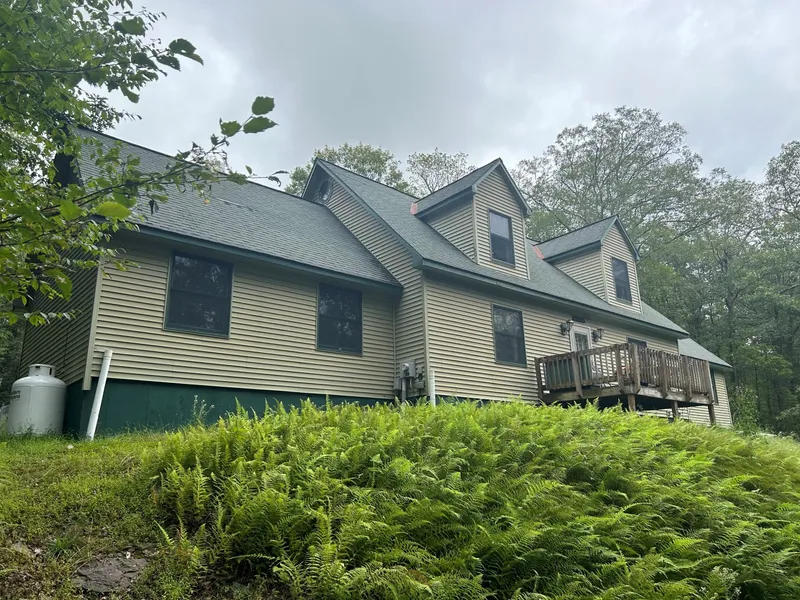 4 BR, 4 Bath on a township road with 3.08 acres. No HOA and no dues. 430+ Feet of road frontage provides a private setting. Modern eat-in kitchen; fully applianced, formal dining room, 18x20 Great Room with Cathedral ceilings. Primary bedroom on 2nd floor with Primary bath, finished basement with 3 bedrooms and 1 1/2 baths plus utility room and small workshop. One car attached garage with circular driveway. Shooting range is set up behind house. Property begins in Middle of walking path to right of driveway. House needs updating, priced to sell and motivated seller!