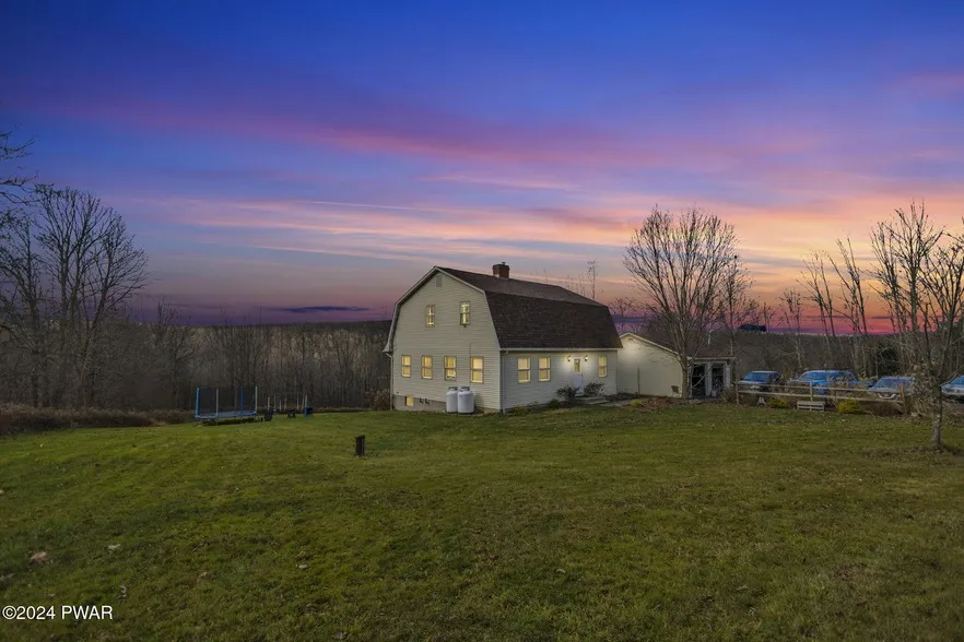 METICULOUSLY UPDATED 4 BEDROOM, 3 BATHROOM DUTCH COLONIAL HOME ALMOST 5 ACRES IN CHERRY RIDGE TOWNSHIP! This stunning 4 bedroom, 2.5 bath home in Cherry Ridge Township has been completely updated and offers the perfect combination of luxury and comfort. Located just minutes from schools, downtown Honesdale, and Lake Wallenpaupack, this move-in ready property provides both convenience and a serene setting. The main level features a brand new, eat in kitchen, complete with quartz countertops, a stylish backsplash, and top-of-the-line appliances. The kitchen's cozy eating area, with a beautiful brick fireplace, creates a warm and inviting space. Just off the kitchen, the warm sunroom provides a serene retreat with views of the expansive private backyard, perfect for relaxing or entertaining. Hardwood flooring spans the formal dining room and spacious living room, while a versatile first-floor room serves as an ideal bedroom, office or hobby space. A conveniently located half bathroom and ample closet storage complete the main level. The second floor offers a luxurious primary suite with a private full bathroom, a large walk-in closet, and an additional oversized closet space for extra storage. Two additional bedrooms, all with hardwood flooring, share a beautifully updated full bathroom with luxury vinyl flooring. The full unfinished basement offers endless potential for additional living space with full walkout access to the awesome backyard. This home is packed with thoughtful updates, including a new roof and much more. Set on a picturesque lot that extends from Owego Turnpike to Wanoka Road, this property combines peace and privacy with proximity to schools, downtown Honesdale, and Lake Wallenpaupack. The oversized detached two-car garage provides easy access to the home's side entry, making daily living a breeze. With its move-in-ready condition, stunning updates, and beautiful setting, this home is a true gem in Cherry Ridge Township!