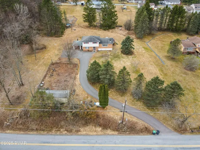 BEAUTIFUL & APPEALING 4-6 BEDROOM, 2 BATHROOM BI-LEVEL HOME ON A LARGE 1 ACRE LOT WITHIN WALKING DISTANCE TO WAYNE HIGHLANDS SCHOOLS! Ideally situated on the quiet outskirts of town and just a short walk to Wayne Highlands School District, this beautifully maintained home offers the perfect blend of comfort, convenience, and location. Step inside to a warm and welcoming main level featuring a bright living room with hardwood floors, a cozy wood-burning fireplace, and a large bay window that fills the space with natural light. The adjacent kitchen boasts stainless steel appliances, quartz countertops, and easy-care vinyl flooring, while the eat-in dining area provides a great space for everyday meals and casual entertaining. The lower level offers even more living space with a spacious family room, two large and flexible areas ideal for a home office, guest rooms, or hobbies. Two additional versatile rooms are accessed through the dedicated laundry area, offering endless possibilities for customization. Enjoy outdoor living on the generous wooden deck--perfect for dining al fresco or simply relaxing and taking in the peaceful surroundings. The home also features a nice-sized yard for gardening with a storage shed, an attached garage, and convenient backyard access to enjoy the private surroundings. Set on a private lot with scenic surroundings and just minutes to schools, parks, and all the amenities of town--this is the perfect place to call home!