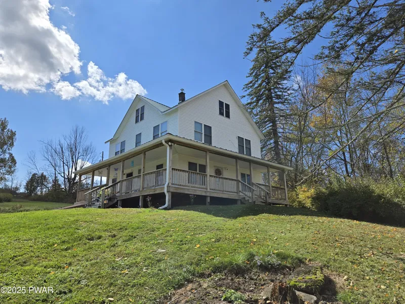 CLASSIC 1914 FARMHOUSE, 20 ACRES, 2 BARNSLONG PRIVATE DRIVE LEADS TO THIS PRIVATE 4 BEDROOM, 1 1/2 BATH UPDATED FARM HOUSE, FEATURES LIVING ROOM, PARLOR, DINING ROOM W/ POCKET DOORS, EAT IN KITCHEN W/ APPLIANCES. 4 BEDROOMS WITH ORIGINAL WOOD PLANK FLOORS, FULL BASEMENT, OIL HOT WATER HEAT AND PROPANE HEAT. ENTERTAINMENT SIZE COVERED FRONT AND SIDE PORCHES, VINYL SIDING, METAL ROOF, AND REPLACEMENT WINDOWS. OLDER BARN 40 X 100 AND POLE BARN 30 X50.