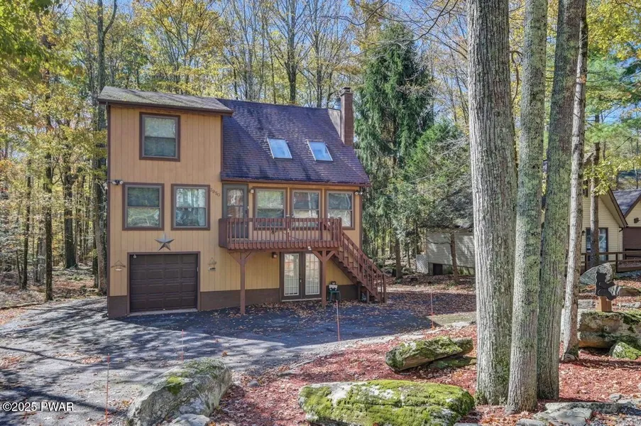 Beautifully Maintained Home Near the Golf Course in The Hideout!This charming home is ideally located near the golf course, clubhouse, and indoor recreation center in The Hideout--a premier four-season, amenity-filled community in the Northern Poconos, just two hours from the NY, NJ, and Philadelphia areas. Arrive by way of a paved circular driveway and take in the natural beauty of the surrounding woods from the inviting front deck or the expansive rear deck--perfect for relaxing or entertaining. Inside, the main level features an open floor plan with a stunning stone propane fireplace and large windows that fill the space with natural light. The spacious kitchen and dining area flow seamlessly into the living room, creating a warm and welcoming atmosphere. The primary bedroom is conveniently located on the main level and includes a large full bathroom that also connects to the hallway for added convenience. Upstairs, you'll find a beautiful open loft overlooking the living area, along with two additional bedrooms and another full bathroom--ideal for family or guests. The finished lower level is designed for fun and functionality, featuring a recreation room with a custom bar and a great vibe for entertaining, plus a laundry area and half bathroom. A garage adds even more convenience for storage or parking. This home has been lovingly maintained and cared for throughout. Most furnishings are negotiable, making this the perfect opportunity to move right in and start enjoying all that The Hideout has to offer--golfing, boating, beaches, skiing, indoor sports, fitness center, dining, and so much more!