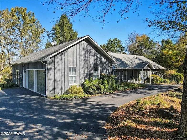 ELEGANT RANCH - BEACH LAKE AREAExperience refined comfort and timeless design in this beautifully appointed single-family residence situated in the highly desirable Beach Lake area. This thoughtfully crafted home offers sophisticated one-level living, combining luxurious details with effortless functionality. Step inside to discover two spacious bedrooms plus a versatile third bedroom or private office, ideal for modern lifestyles. The primary suite provides a private retreat with generous proportions and elegant finishes. A gracious living room with cathedral ceiling, highlighted by a stunning fireplace, welcomes you with warmth and style, while a very large family room offers additional space for entertaining, relaxation, or gatherings with loved ones. In season, the multiple gardens are stunning, featuring edible berries and fruit trees. Enjoy seamless indoor-outdoor living with a large back deck perfect for entertaining or peaceful mornings overlooking the gardens. A remote-controlled retractable awning provides shade and comfort. Enjoy the outdoors in any weather. The master bathroom shower features body jets that enhance blood circulation and muscle relaxation. Throughout the home, in-floor radiant heat delivers quiet comfort underfoot, and a whole-house generator ensures peace of mind in every season. The attached 2-car garage provides convenient access and extra storage, complemented by a separate large shed/workshop--perfect for hobbies, creative projects, or even a potential guest house. The house was built by renowned metal sculptor Raymond Rocklin, one of the founders of the abstract expressionism movement, this home carries an artistic legacy. The spacious shed once stored his creations when they weren't exhibited at the Museum of Modern Art (MoMA) in Manhattan and other prestigious galleries. Nestled in a tranquil, well-established neighborhood surrounded by natural beauty, this residence offers the perfect blend of luxury, comfort, and location.
