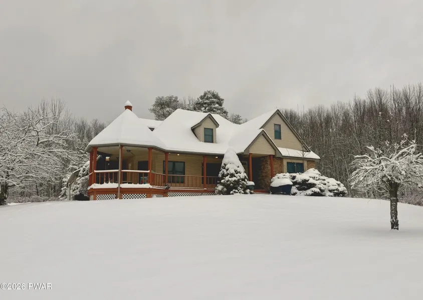 Escape to your own private retreat with this sprawling 5-bedroom, 2.5-bath custom home set on 18+ picturesque acres in Lakewood! Featuring an inviting open floor plan, this home offers a large living room with a cozy pellet stove fireplace, a formal dining area, and a spacious eat-in kitchen with a center island--perfect for entertaining. Enjoy the warmth of the sunroom or relax in the main floor primary suite complete with hardwood floors and a full bath. Four additional bedrooms provide plenty of space for family and guests. The massive lower-level recreation room is ideal for game nights or movie marathons, while the wraparound porch with a built-in gazebo area sets the scene for evenings by the fire. An attached 2-car garage and large shed offer ample storage for all your gear. Adventure awaits just outside your door--18+ mostly wooded acres perfect for hunting or ATV riding, and the O&W Rail-Trail right across the street offers 30+ miles of hiking, biking, horseback, and snowmobile trails. Located only 30 minutes to Elk Mountain, 35 minutes to Honesdale, and 10 minutes to the Delaware River, this property truly has something for everyone--whether you're seeking a full-time residence or the ultimate recreation getaway!