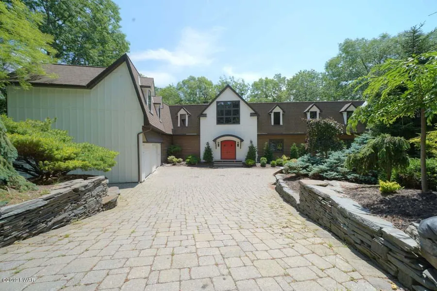 Boulder Point on Lake Wallenpaupack! Over 7,000 sqft in this grand lakefront masterpiece! This home offers 5 bdrm suites, 5 1/2 baths (all w/ marble), spacious living room w/ soaring ceilings, fireplace & doors that walk out onto the deck; perfectly equipped kitchen w/ oversized island, lg round-table eating area & top of the line appliances; formal dining rm, office/den & more! The spacious lakeside Trex deck is the perfect place for outdoor entertaining & nearly 200' of wooded and level lake frontage is the perfect place for a lakeside bonfire. Attached 2+ car garage, impeccably landscaped & stunning stone walls, gated & paver driveway, landscaped paver parking area on the add'l lot behind home, and an incredibly private setting! All located in one of the finest communities on the lake!