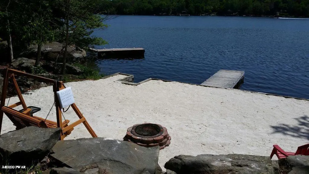 INCREDIBLE LAKEFRONT! - Spacious 6 bedroom, 4 bath lakefront home in amenity filled community! Home features open floor plan, living room with brick faced fireplace, family room, hot tub, patio, private beach with fire pit, and dock. Converted garage turned into a large game room. Perfect family retreat in gated community with pools, beaches, tennis, clubhouse, and teen center. Excellent rental history!!!