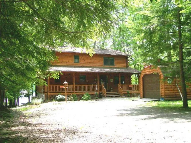 from your CUSTOMER LOG HOME with LEVEL LAKE FRONTAGE on MOTORBOATING Lake Wallenpaupack! Lots of room to bring family and friends, 3 bedrooms, plus large sleeping loft, full finished lower level, 2.5 baths, 2 covered porches, 2 fireplaces, garage, private dock and more! Hurry, this one has it all!