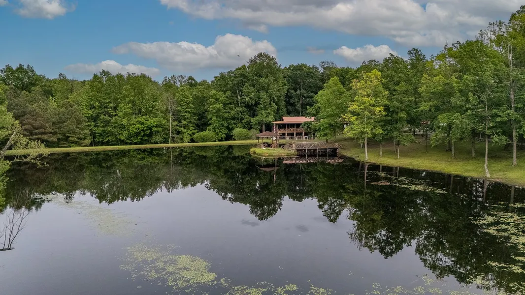 Discover the perfect blend of comfort, charm, and functionality with this picturesque property. Featuring a log and stone home with a wrap around porch, nestled on 10 acres. Overlooking a serene 2-acre private lake, this property offers a park-like setting with a tree-lined driveway leading you home. Recent upgrades on the home include a kitchen renovation with new cabinets, granite, appliances, and a large island. New double pane windows were installed in 2018, gutters in 2019, RV carport in 2022, new HVAC in 2022, equipment/hay barn, 2 bathroom renovations, a Generac Generator was added for the entire home, and a storm shelter was installed in the floor of the detached garage floor. The basement has it's own bathroom, living area and 2 rooms that the sellers use as bedrooms. The septic tank was permitted for a 2 bedroom home, but the seller has used it for up to 5 bedrooms. This rare p...