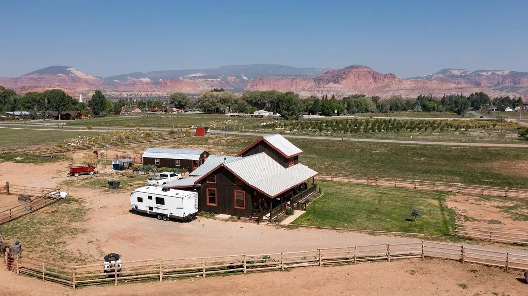 Enjoy real country living on this 10 acre farmstead near Torrey. The farmhouse has 2 bedrooms, 3 baths, garage and a wonderful front porch. Nearly all the land is irrigated with gravity-flow gated pipe. An abundant water right of 43 shares of Torrey Irrigation and Torrey city water make for a favorable water situation. The property has a young orchard with 16 trees - apple, pear, apricot, plum, and peach. Near the orchard are berries and raised bed vegetable gardens - all with an automatic watering system. Horse facilities consist of a 6-stall pole barn, a stud pen, and a round pen. The perimeter of the property is completely fenced with a pole fence separating the house and gardens. A 522 unfinished guest house is off to a good start. 9 of the 10 acres are taxed as Greenbelt, so the property taxes are reasonable. The views of Torrey and the red sandstone cliff face of Thousand Lake Mountain are gorgeous. The property cannot be subdivided or used commercially. The home may be used as a vacation rental. Terrific location on the Great Western Trail not far from Torrey's Main Street. Close to Capitol Reef. TO-388