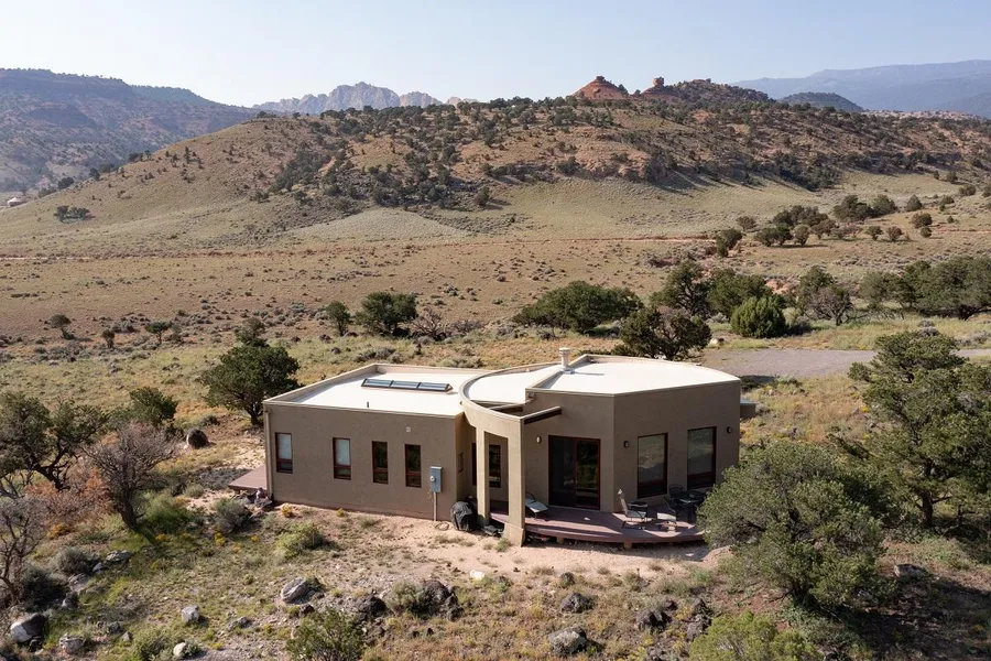One of those rare properties with a terrific view, seclusion, privacy, space and an exceptionally delightful home. Expertly designed and built with quality materials, this contemporary southwestern style home has perfectly placed windows for the view and a floor plan that flows nicely. Two bedrooms, one bath, stained concrete floors, granite countertops, two-sided fireplace and spacious decks. The 7-acre lot is part of a carefully created community with minimal CCR's concerned with respecting the environment. The HOA provides water from the community well with each owner having their own water right. Near Capitol Reef and miles of public lands for world class hiking. PLEASE DO NOT VISIT THE PROPERTY UNACCOMPANIED BY LISTING AGENT.