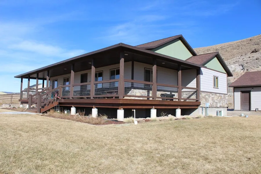 This incredible 5 bedroom, 3 bath custom home is constructed with quality materials and workmanship, and the utmost attention to detail. The vaulted ceiling, finished with blue pine is an eye-catching feature, and the beautiful oak flooring and solid knotty alder doors and trim throughout, add a distinctness to the home as well as value. The main level consists of an open living and kitchen area, master bedroom and bath with separate tub/shower and walk in closets, a second bedroom and a laundry/mud room. The lower level is completely finished with three bedrooms, generous living area, mechanical room and storage. The kitchen is very well designed with an abundant amount of cabinetry and counter space, an island and large dining area open to the living area. The nicely sized front windows overlook the valley. Knotty alder cabinets and granite countertops throughout are classy and timeless. The exterior is attractive with finishes of cement board and stone, and an inviting wrap around deck with pretty views in every direction. The home is situated on 1.44-acre lot at the center of the newly developed Highline Subdivision. It is one of the highest and best lots in the entire subdivision and borders BLM. The oversized two car garage with workbench is detached. The exterior also includes a dog run, playhouse and fully fenced garden space. Partial landscaping with sprinkling system and one share of irrigation water. 1659 South 70 West, Fremont. $545,000.