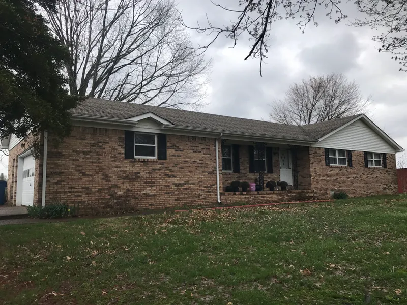 One story brick ranch on approx 5.6ac in TN remaining land in Ky. This lovely country home offers 3 bdrm w 2 1/2 bath w utility having the 1/2 bath. Great dining area w Stone Gas FP w insert. Sidewalk entry into a covrd frnt porch and good size LivRm. (3) pole barn w 1 pole brn having Office attached. Det 2cg & Home w Attached garage and wrk space w cabs. Crop proceeds go to seller. 220 in RV Shop Tn land, House, 2 Barn(s), Shed(s), & shop. Call for clarification.