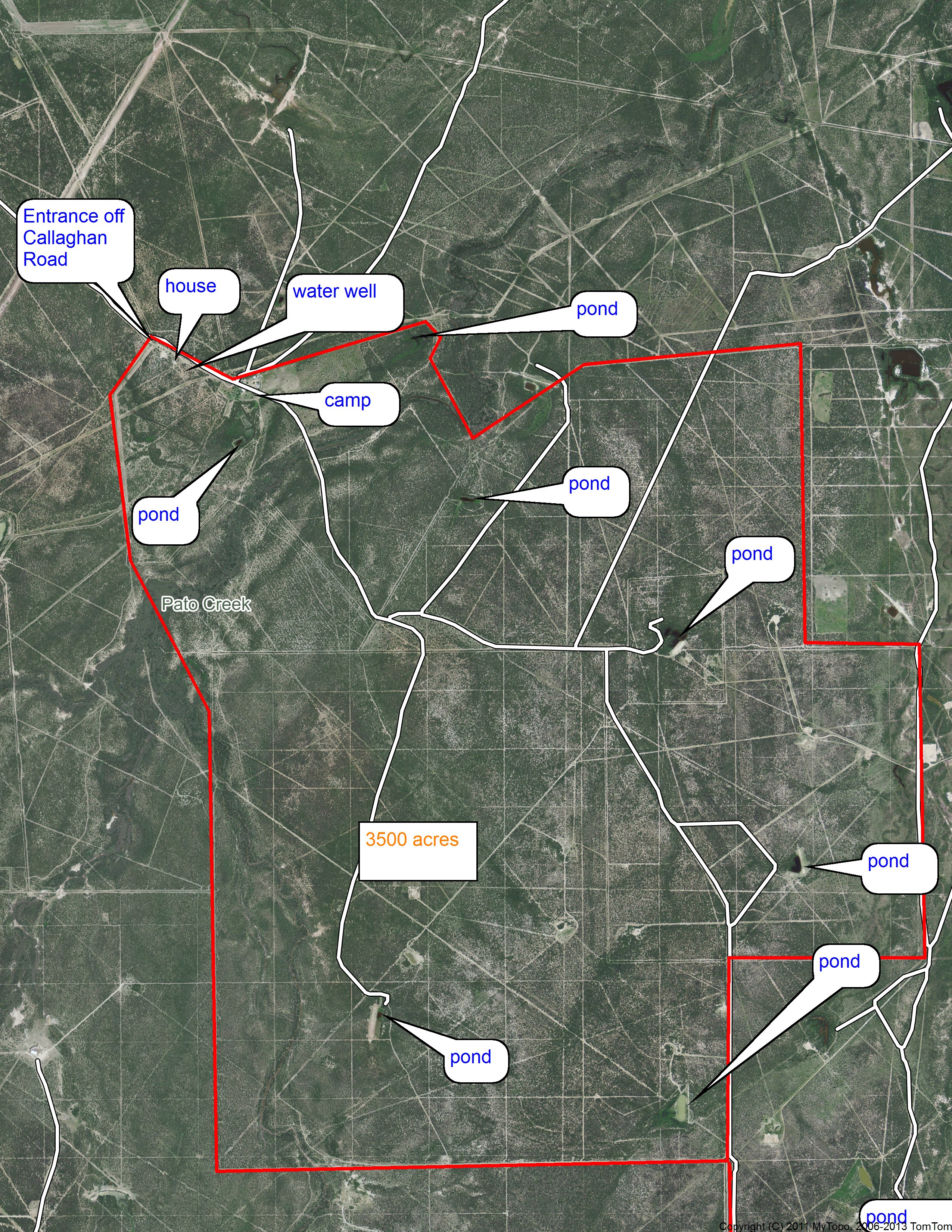 Location: The property is located in some of the best deer country in the state! It is situated to the North of Highway 59 and South of Hwy. 44, with I-35 to the West. From I-35 go East on Callaghan road about 15 miles to ranch easement. From Hwy. 59 take Lincoln/Nicholson Road about 24 miles to ranch. All weather easement is about 3 miles to ranch.