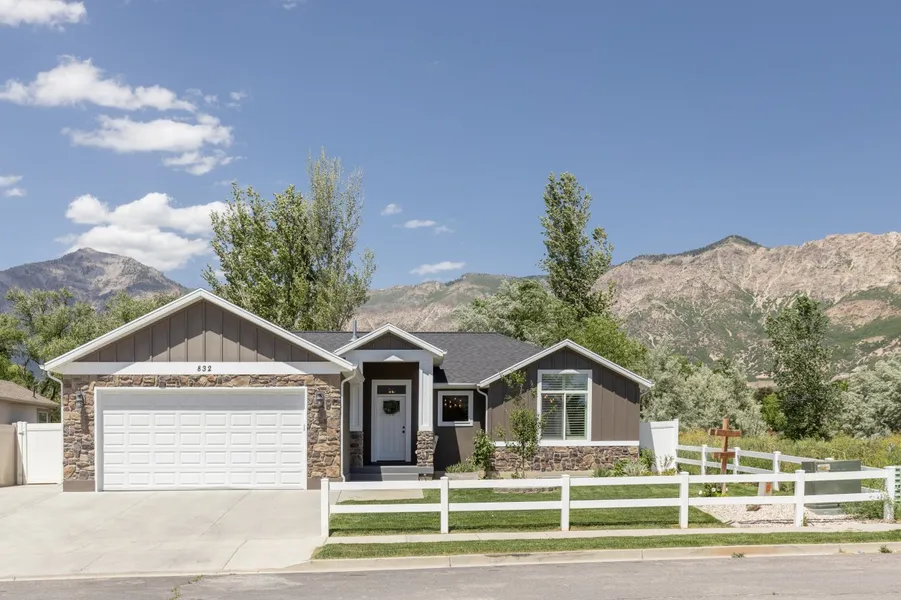 Amazing home with an equally amazing backyard to match! A tranquil stream flows through your future fruit trees all nestled in your private backyard that is fully fenced and shaded by tall, mature trees...not to mention the stunning views of the mountains. Newly replaced LVP wood flooring throughout the main floor provides consistent elegance to the spacious floorplan. The kitchen boasts granite countertops, white cabinets, and upgraded stainless appliances that will stay with the home. The home has many features like the stone wall in the master bedroom, exposed beams, vaulted ceilings and large bathrooms that combine vintage character with modern design. Come take a look and see for yourself...you won't be disappointed! Square footage figures are provided as a courtesy estimate only and were obtained from county records. Buyer is advised to obtain an independent measurement.