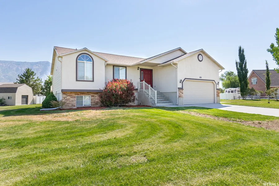 The views of the Ben Lomond Mountains from the spacious Trex deck to the east is so gorgeous and the sunset to the west is amazing. West facing Rambler style home has a massive family room in the daylight basement, owner suite, and laundry on the main level. 3 spacious bedrooms up and 2 even more spacious bedrooms downstairs. New carpet throughout, roof and rain gutters are just a few months old, new kitchen stove, furnace/AC new in 2018, .56 acre lot is a real nice find giving room to spread out with any outdoor features you may want, including your goats and chickens (A-1 Zoning so they are welcome). The lot now has a large outdoor shed, partially vinyl fenced, basketball/patio cement pad, firepit space, and spacious deck with steps or a slide to access the yard. The owner worked at HAFB and says that it was 15 min. to work. Quiet, rural feel but yet minutes to freeway access and to amenities. Be doing almost any outdoor activity in less than 1 hour. Fiber Optics is recently brought into the neighborhood and is in the street but has not been hooked up to this home as they were moving.
