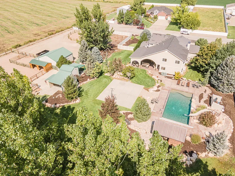 You're going to love this beautiful home with country living at it's best! Your private home/resort/ retreat with horse property! WOW! Plenty of room for a big family and guests. The luxury of a year round swimming pool, spa, covered heated patio with grilling station; fire pit, and an outdoor screen are just a few of the many outdoor features. Basketball standard, soccer/volley ball field. Your home has a private office/den, perfect for working at home. 7 bedrooms with a Master bedroom/spa fit for a king and his queen! Three family rooms, a billiard room, a theater room, a work out area including the furnishings and equipment! Although you can't see it, you can feel the love that made this house a home! The pictures tell it all. All of the furnishings are included, ask for details. There are so many exciting features about this property, make an appointment to see more. Call KC for a showing 801.721.2409. A 24 hour notice is acceptable. Proof of Funds or Lender Approval Letter must be sent to agent before making appt for showing. Square footage figures are provided as a courtesy estimate only. Buyer is advised to obtain an independent measurement.