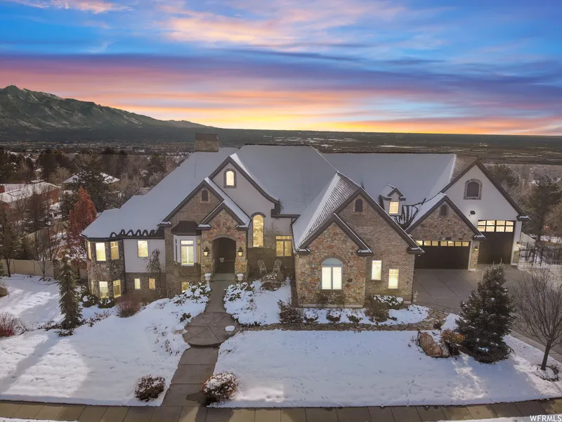 This custom built home is located in an exquisite neighborhood and offers a remarkable living experience. Every oversized window provides stunning views of the valley and mountains and the interior appointments are as remarkable as the surroundings. The home boasts an indoor basketball/sports court, theater with multi-level seating, an exercise room with views of the pool, pergola and garden, and an oversized 6+ car garage with a high bay RV stall, epoxy coated floors, 220V outlets, drains and separate bathroom. also a second 2 car garage/shop downstairs. Quality finishes throughout include exposed timbers, stone, solid wood doors, wide plank hardwood flooring, travertine and custom bookcases. The gourmet kitchen features all top end amenities with a second kitchen on the lower level. Laundry rooms on both levels include ample storage and a drying cabinet. The home boasts a 20x50 heated saltwater pool with automatic cover and smart vacuum, as well as a hot tub and full private bathroom nestled inside the yard and gardens that are meticulously landscaped. This home is the perfect spot for entertainment and relaxation. It features radiant heated floors that heat the entire home along with a full HVAC system. The driveway and walks are heated by a dual boiler system so you don't have to worry about any snow shoveling. The second floor separate living area is perfect for hosting guests or just enjoying some alone time. The dog run with its heated dog house means your pup can enjoy the outdoors all year round. The sound system, water softener, central vacuum, whirlpool tub, steam shower, cold storage room ,and separate bar room with emergency water storage tank truly makes this home unique. And as an added bonus, there is even a secret storage space! This home has been meticulously maintained and is ready for its new owners to come enjoy all of its luxury amenities!