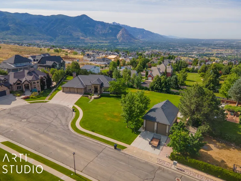 *PRICED TO SELL!* Immaculate home inside and out. 2 year home warranty included. Welcome to the lap of luxury surrounded by the natural beauty of Ben Lomond Peak. This high-end haven offers the pinnacle of comfort and sophistication. Situated on nearly one acre of meticulously landscaped grounds, this residence provides a rare blend of opulence and serenity for both indoor and outdoor living. The grand living spaces are adorned with top-of-the-line finishes and feature the seamless integration of forced air AND radiant floor heating, ensuring a cozy ambiance throughout the seasons. There are two laundry rooms, plus an extra large theater room for entertaining. For those who appreciate the convenience of a home office, this property offers multiple office locations, including a dedicated office/living space above the detached garage. Imagine working with the inspiring backdrop of a mountain skyline adding a touch of tranquility to your professional endeavors as well as a gym area including a climbing wall in this awesome space. Storage is never a concern in this residence, as every inch has been thoughtfully utilized to provide you with plenty of room for your belongings including a large walk-in fireproof SAFE. Ask to see the GLOWING professional inspection report. SELLER MOTIVATED!