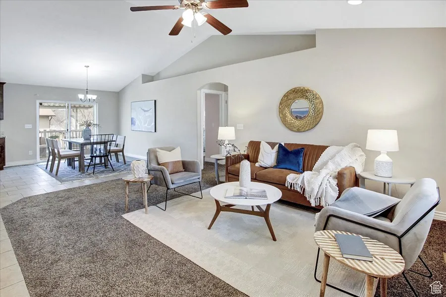 NEW IMPROVED PRICE. Back on the market as of April 26th. Buyer's financing failed. Spacious open concept rambler in fantastic location with stunning mountain views! Under $180 sq ft. Main level living but with the bonus of a spacious basement with 3 oversized bedrooms and a huge storage room plus, an additional living room. This home has 6 total bedrooms. Enjoy the sun rise from the covered front porch or the sunset from the newly covered back deck. Open concept kitchen, dining, and living room. Vaulted ceilings add to the spacious feel of this home. Large owner's suite with oversized shower. Kitchen boasts granite counter tops, stainless steel appliances, and a large island for all of your baking and entertaining needs. New modern garage door that is also insulated. Neutral colors throughout. Gorgeous landscaped yard with newly stained fence. Just minutes to shopping, restaurants, hikin...