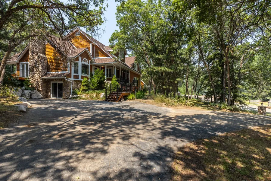 PRICE REDUCTION - Welcome to your personal mini-resort in Eden, a very private lot nestled on 2.59 acres with breathtaking views of Nordic Valley Ski Resort. This magnificent 4550 sq.ft. home boasts 5 bedrooms, 6 baths, offering luxurious living in an unparalleled setting. Outdoor enthusiasts will relish the property's features, including a spring fed pond with fish, a large gazebo, and a dedicated pickle ball court/ basketball court. In addition, the property is perfect for horse lovers with a 3,000 sq.ft. metal shop/barn complete with stalls. Above the barn is a spacious room framed for a 2-bedroom apartment, providing additional living space or rental potential. Storage is abundant with capacity for RV's and boat storage. This property also features both an attached 2-car garage and a detached 2-car garage with a finished loft area above. The 40-year Elk heavy-duty asphalt shingles ensure durability, while the tankless water heater provides efficiency and endless hot water. Inside the home you will find timeless granite countertops throughout, three cozy fireplaces and a welcoming family room with a floor to ceiling stone fireplace. Other features include an indoor hot tub, sauna, new LED lighting and fixtures throughout along with new electrical switches and outlets. Enjoy the outdoors from the massive wrap-around deck and the covered porch, both completely renovated using Trex materials. Includes new heat cable and snow rail to protect the home from the snow and ice. This property is ideal for both entertaining or relaxing in this serene environment. Come check out this truly unique living experience waiting for you!