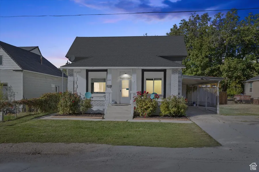 Charming cozy bungalow featuring vaulted ceilings, remodeled bathroom, and kitchen. New windows, plumbing and electrical. Adorable covered porch and covered patio. Double size lot with back access from neighboring road. New furnace and A/C, newer carpet and laminate flooring. RV parking. Oversized shed.