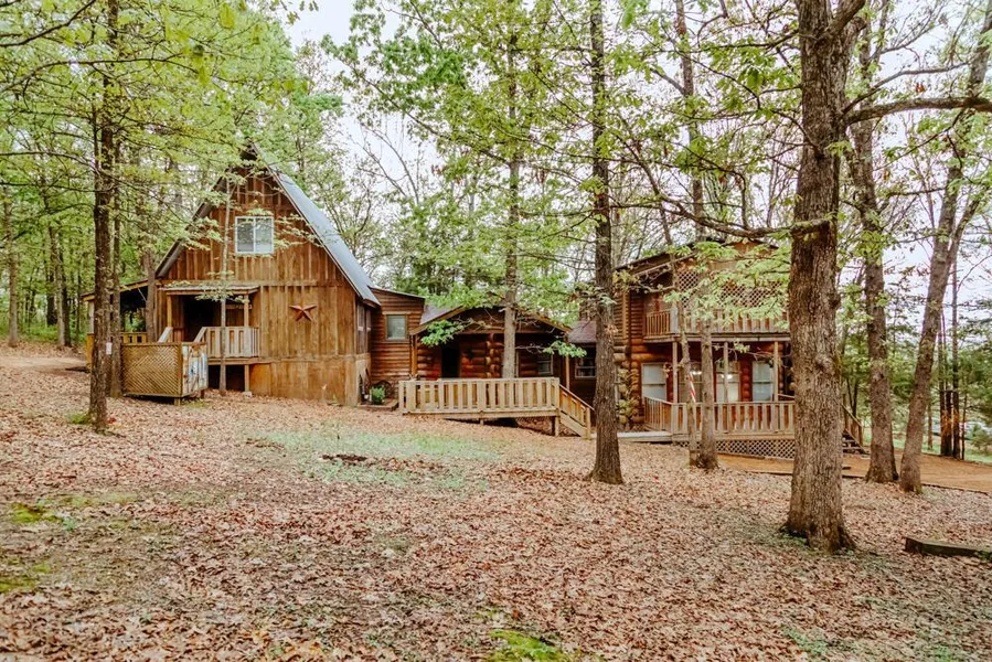 This genuine custom designed and built log home with a newly graveled private drive and spectacular wooded seclusion is nestled on 20 +/- acres in the rolling scenic hills of the beautiful Ozarks. Enjoy the intricate details in the home, along with its soaring ceilings, large floor plan, open concept, multiple decks, and lots of uniqueness. At just under 2,600 square feet, this two-story home boasts plenty of room with 4 bedrooms, 1 bathroom, and a study that could easily be converted into another bathroom. This property also has plenty of outbuildings, making it the perfect Ozark homestead. It includes an outhouse, a custom-built chicken-coop, a pottery shed, and a 30'x40' pole barn, giving you plenty of space for your animals and equipment. All of this sits on a picturesque 20 +/- acres with a great mixture of pasture and open, mature timber. All of the property lines are fenced, making it turn-key for livestock, and the property will also include the 40' round pin for horses or livestock.