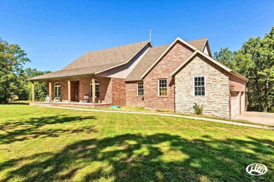 Incredible 4BD/3BA home with a finished basement. The huge inviting covered front porch allows for sunrise views, and the back deck takes in the sunsets. With a 3-car garage and 30 x 40 shop, storage and room for toys is no problem. Just out the back door is a nice stocked pond. The great room will capture your attention with the soaring ceiling, wood floors and the fireplace with a pellet stove insert that will keep you cozy at night. Spacious kitchen/dining with granite-look faux marble countertops, island, pantry and lots of beautiful hickory cabinetry. A master suite features a tray ceiling, large walk-in closet and a great bath area. You will love the stairwell to the walk-out basement that has a large family room, wet bar, bath and bedroom! Lots of storage on both levels. Lots of land for a few horses or just a walk in the woods. You have to see this clean and maintenance-free concept home. Just 30 minutes to Springfield and 3 hours to St. Louis or Kansas City. Please call the listing agent for your private viewing of this well-maintained home with acreage.