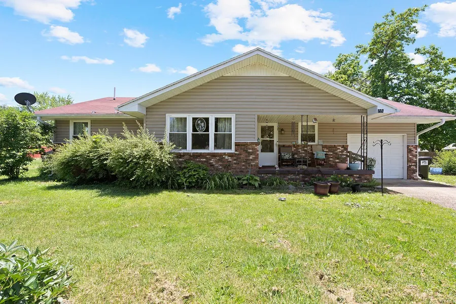 Move in Ready!!! This 3 bed 2 bath has it all a 105x195 yard, with 2 storage sheds. Solar panels so your electric is very low, on a average of $30.00 per month. Great location, you can walk to the square and the libary. The new white cabinets are plentiful with storage. With beautiful counter tops. The living room is very spacious. The flooring is carpet and vinyl. You will not be disappointed in this home. The one car attached garage is great for bad weather.