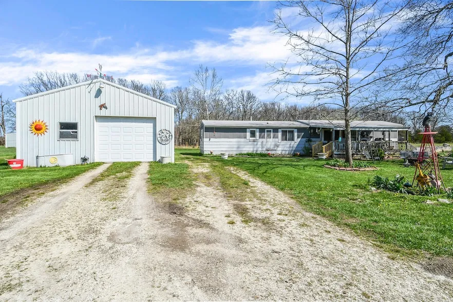 Lovingly cared for home on almost 13 acres with so much to offer! On a paved highway, with low-moderate traffic, this property is perimeter fenced with 5-strand barb wire. A long driveway welcomes you home. Large, covered front porch is perfect for peaceful relaxation or entertaining! The meticulously cared for mobile home features 2x6 construction, house-type dual pane windows, an eat-in kitchen, whole home stereo/sound system, guest room with half bath ensuite and so much more! The land was originally utilized for working cattle, has two loafing sheds with stalls, and a stocked pond. In recent years, the pasture has yielded about 50 large round bales per season. Detached garage has concrete floor and 220. In-ground storm shelter has power ran to it. Two apple trees and a beautiful bulb garden complete this pristine country living.