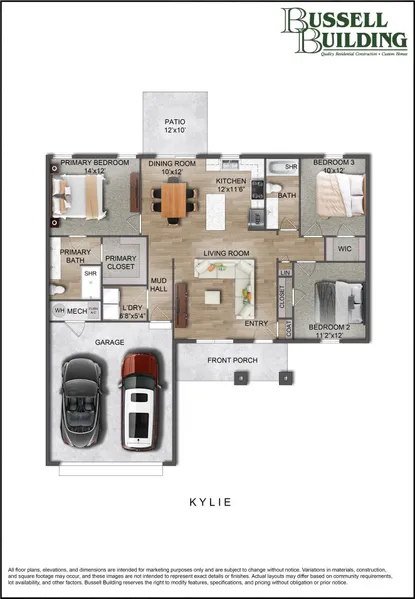 Step into the Kylie, a 1,490 sq. ft. home that redefines convenience and style. Designed with an open-concept layout, the living, dining, and kitchen areas flow together effortlessly, creating a perfect space for gatherings and everyday living. The private owner's suite offers a serene retreat, while two additional bedrooms provide plenty of flexibility for family or guests. With features like 9' ceilings, premium finishes, and smart home technology included at no extra cost, the Kylie delivers value and modern living, all under one roof.*Photos may be of a similar home*