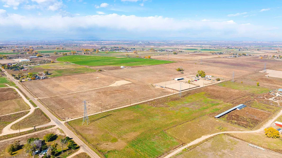 Located just east of Del Camino with paved-road access along Firestone Boulevard / Weld County Road 24, this exceptional Weld County property captures the essence of Colorado’s western lifestyle—open skies, panoramic mountain views, and all the improvements needed for horses, livestock, or an income-producing agricultural or equestrian base. The land is ag-zoned with no covenants, HOA, or metro district, offering flexibility for continued agricultural use, equestrian operation, or future development potential. Perfectly positioned between Denver, Boulder, and Fort Collins, and within minutes of Highway 85 and I-25, the property combines peaceful country living with convenient access to the Front Range corridor.