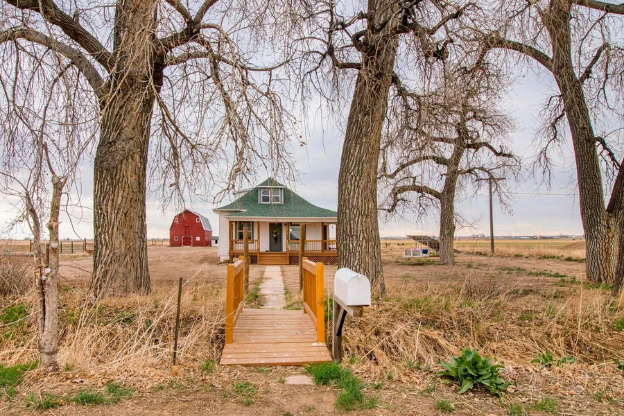 Updated Farmhouse on nearly two acres of flat, usable land! Rarely is there an opportunity to own and work the land you live on, but this sweet 1913 home is ready for it's new owners to utilize this property to it's highest potential. The 1.75 acres of eastern Colorado can be farmed, used for livestock or just enjoyed for the space. A traditional red hay barn is included on this property, with room for six horses, plenty of hay storage or tinkering with your favorite toys. Inside this picturesque home are charming original hardwood floors, original mill work and built-ins, plus loads of character. With three ample conforming bedrooms on the main level that spill with natural light, a full and updated bathroom, HUGE walk-in pantry and HUGE mud/laundry room, this farmhouse isn't lacking in size. The kitchen has been updated with modern conveniences like a dishwasher, stainless steel refrigerator and stove. The heart and showpiece of this home is the dining room, a space that has so much warmth and space, a place to gather for any daily family function or annual special occasion. The outdoors can be appreciated on the wrap-around porch, giant tree swing or fenced backyard area, perfect for your furry family. To add to the charm a bonus loft upstairs, can be used for anything you can imagine, from a playroom, office, guest room, crafting area, or workshop. Located close to amenities such as shopping, dining and transit into the city of Greeley only a 10 min drive. Country living in Colorado has never been sweeter!