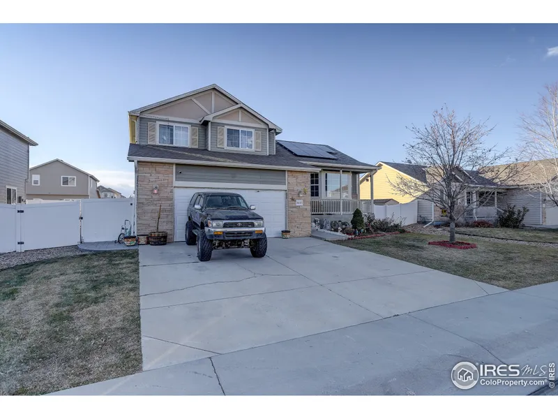 Well maintained home in a established Mead neighborhood. Home features 4 bedrooms, 3 baths 2 car garage. Main level features a light open concept living/dining/kitchen, with step down to Additional bedroom with private full bath and has a walkout to the backyard. Beautiful vinyl privacy fencing with large side gate for boat or large item storage. Playground equipment included in the home purchase. Easy access to I-25 and surrounding areas. Close to Mead schools.