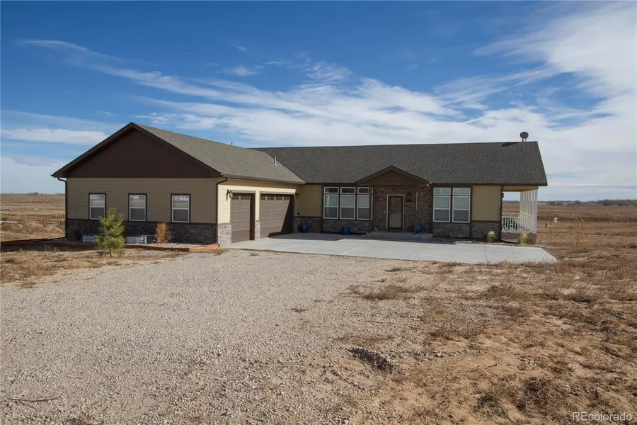 ELIGIBLE VETERANS MAY BE ABLE TO ASSUME THE SELLERS LOAN @ 2.5%. Spacious Ranch style home located in Pelican Lake Ranch neighborhood with views of Milton Reservoir. This beautiful home was built in 2020 and checks all the boxes on your 'wish list' & more. Sits on 1.94 acres. There are 3-Bedrooms & 2-Bathrooms. The main floor features a Great Room with cozy fireplace, the 3 large windows allow lots of natural light, built-ins, and tray ceiling. Large Kitchen with lots of cabinet & counter space, large island, stainless-steel appliances, gas stove with exhaust hood, tile backsplash, and large 15x5 walk-in pantry. Dining Room with door to one of the back patios where you can enjoy breathtaking sunrises. Master suite with 5-piece bath, walk-in closet, barn door to bathroom, and private access to the 6X29 deck. There are 2 additional guest bedrooms. A full-size guest bathroom. The Laundry room/mud room with utility sink. Wood floors in Great Room, Kitchen, and Dining Room. If you feel you need more space, the walk-out basement is a blank canvas, you can design and finish the full unfinished basement at your leisure. (Basement plumbed for future bathroom) There are lots of amenities in the community including pool with cabana, playground, tennis courts, and basketball court. Enjoy hiking & biking trails, bridle trails, fishing/canoeing/paddle boards at Lake Christine. You can choose Platteville, Lasalle, or Gilcrest for elementary schools. Visit Pelican Lakes Ranch website for more information on the community. (https://www.pelicanlakeranch.com) Don't miss out on this opportunity to live in this beautiful home.