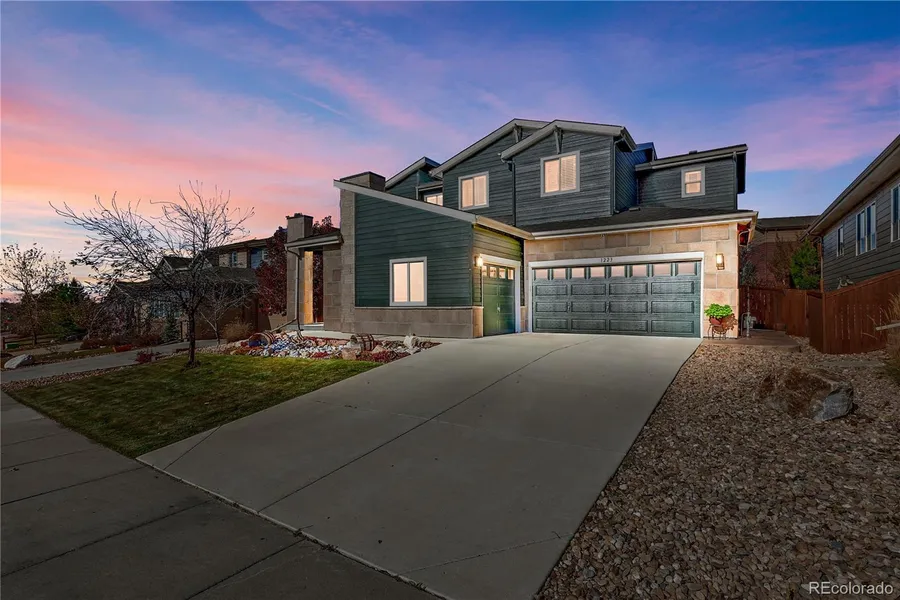 Welcome to your dream home nestled in the heart of the Vista Ridge neighborhood - home to the Colorado National Golf Course. You can't miss the views from this meticulously designed 5-bedroom, 4-bathroom home which seamlessly blends refined sophistication with modern functionality. Upon entering, you will immediately experience the updates and additions of contemporary finishes and high-end fixtures. The heart of this home is undoubtedly the kitchen and this one is a chef's delight - equipped with all stainless steel appliances, extensive quartz countertops and cabinetry, huge pantry and spacious eat-in area. Finishing off the main level is a home office, complete with built-ins, a formal sitting area, family room and mudroom which leads out to the 3 car garage. Some of the many upgrades to this home include, hardwoods throughout the main level, wide plank LVP in other rooms, Shiplap fireplace surround, updated lighting, trim and crown molding, all new exterior paint, new roof and the list goes on! Upstairs is the stunning primary suite, 3 very spacious secondary bedrooms, built in desk area & laundry room. Descend into the fully finished basement, where you'll find a versatile space transformed into a media room, along with another flex space, bed/bath, & ample storage! Whether you're hosting movie nights or game days, this area offers endless entertainment possibilities. Your outdoor living offers a large covered patio which extends out into the yard with a firepit, raised garden beds, play area for the kids and still lots of room to run and play. The neighborhood has 2 pools, tennis courts, numerous parks, trails and of course, just steps to the golf course! A great central location - easy access to Denver, Boulder, DIA, schools, shopping and numerous restaurants. The home is across from undeveloped open space providing unobstructed mountain views and an open feel as you sit out on your covered front porch! Meticulously maintained - this home truly has it all!