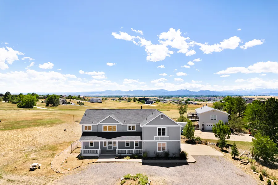 Discover this delightful 2-story home with stunning Rocky Mountain views located in desirable Erie Airpark on over 2 acres! The spacious open floor plan is filled with natural light, featuring hardwood flooring and vaulted ceilings. The main floor features an open kitchen with granite countertops and a large island perfect for entertaining, family room with fireplace, formal office, and powder room. Upstairs, you'll find a huge primary suite with mountain views, large walk-in closet and 5-piece primary bath, and also, a generous loft, two additional bedrooms, and a bathroom. Enjoy beautiful Colorado sunsets and incredible mountain views from the back patio. The home also includes a large unfinished basement awaiting your design, an oversized 3-car garage, and a covered front porch. Located near the Erie Municipal Airport, Erie trail system, connecting to Louisville, Boulder, and Broomfi...