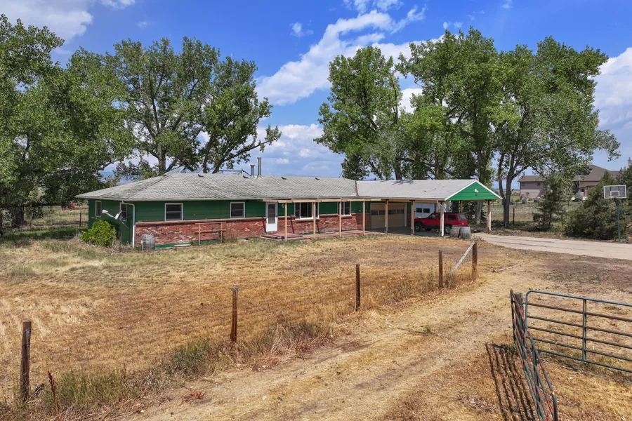 Enjoy the quiet rural lifestyle on 4.27 acres in beautiful Erie, CO. With nice pastoral and mountain views, this home and property provides multiple options for building new or updating and/or expanding upon the existing 3,400 sqft 5 bedroom, 3 bath home with an attached 2 car garage and multiple outbuildings including a barn, detached garage and multiple storage sheds as well as a large carport for additional covered parking. The home has hardwood floors on the main level with a wood burning stove in the living room. The primary bedroom is huge (two bedrooms converted to one large bedroom - could easily be converted back if the next owner so chooses) with an attached full bathroom and walk-in closet. There is a second bedroom on the main level as well (potential third bedroom if the primary is converted back to two bedrooms). The kitchen has laminate floors and countertops with whit...