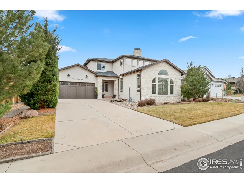 Stunning Custom Home in Prestigious Pelican Lakes Golf Community. Welcome to your own private resort-style retreat, nestled within one of Northern Colorado's most sought-after golf communities. This beautifully designed custom home offers the epitome of functional luxury living, with meticulous & thoughtful detail throughout. As you step inside, you're greeted by soaring vaulted ceilings & an abundance of natural light, creating a spacious atmosphere throughout. An impressive 2 story double sided stone fireplace is the centerpiece of the living area, seamlessly connecting to the dining area & kitchen. The main floor features an expansive primary bedroom suite with a double-sided fireplace, private patio access, & a luxurious 5-piece bath. An additional main-level bedroom, perfect for guests or a home office, provides flexibility for your needs. Continued hardwood flooring leads you upsta...