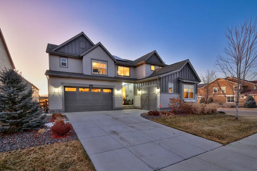 Stunning Flatiron Meadows home that will take your breath away from the moment you step into the charming 2 story foyer with a beautiful modern chandelier and continue to the open concept floorplan with a large gourmet kitchen, stainless steel appliances, expansive living room and dining room that overlooks the covered patio and views of the mountains. The Main level guest bedroom and ensuite bathroom is separated by stylish barn doors for added privacy and that designer touch throughout the home. Conveniently located between the kitchen and garage is large walk-in pantry and mud room with a built-in desk. The main level is complete with a study off the foyer and barn doors that opens up to the 3rd bay garage currently used as a music studio. Have that special car you want to have on display? Or put a pool table and make a game room? The possibilities are endless with this cool flex space. The second floor boasts an expansive loft, convenient oversized laundry room with sink, spacious secondary bedrooms with private bathrooms as well as a stunning master suite featuring a luxurious en suite bathroom and a huge walk-in closet connected to the laundry room. The professionally designed and landscaped backyard on this corner lot is an entertainer's dream! Sit and have a meal under the covered patio or gather around the large built in fire pit and watch the sunset while your family plays corn hole on the turf surrounded by beautiful trees and flower beds. Now this is Colorado living at its finest! Don't miss the opportunity to make this house your home!