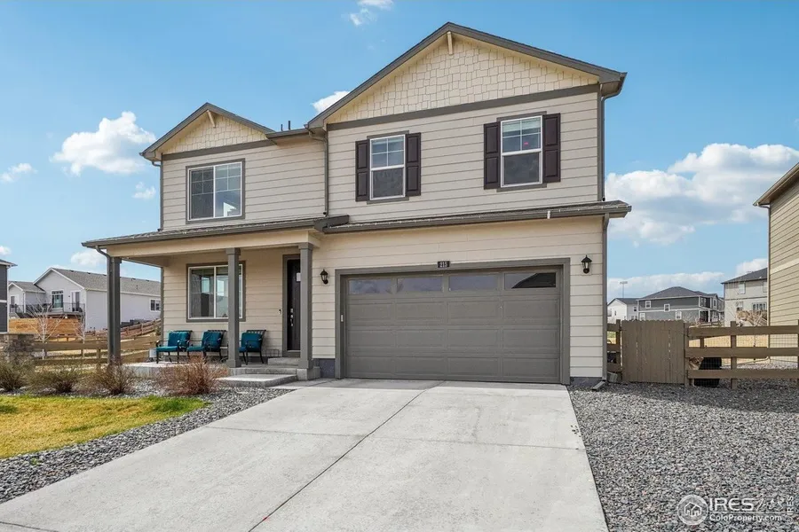 Welcome to this beautiful home in the desirable North Ridge Estates community of Greeley, perfectly situated on a prime lot bordered by HOA greenbelt to the south and behind the property, giving you easy access to walking trails! Enjoy your morning coffee on the charming covered front porch, soaking in the peaceful surroundings. Inside, natural light fills the front formal dining room or office space, offering a versatile area to suit your needs. The open-concept main living area seamlessly connects the kitchen, dining area, and living room, creating the perfect space for entertaining. The kitchen features quartz countertops, stainless steel appliances, a pantry, and an island with sink and seating, while the eat-in area opens to the backyard through sliding glass doors. The main floor also includes a bedroom and full bath, plus access to the attached two-car garage. Upstairs, a bonus loft space provides endless possibilities-use it as a playroom, office, or second living area. The spacious primary suite includes a private en-suite bath, while three additional bedrooms share a full bath with dual sinks, ensuring plenty of space for all. A convenient upstairs laundry room adds to the home's thoughtful layout. Custom top-down, bottom-up blackout shades in all bedrooms offer privacy and comfort. Step outside to the fenced backyard, featuring a storage shed, lawn space, and direct access to the greenbelt. With another common green space just across the street, this home feels extra private and open, providing a true sense of tranquility. Don't miss this incredible opportunity to enjoy peaceful living with easy access to outdoor recreation, schools, and everyday conveniences!