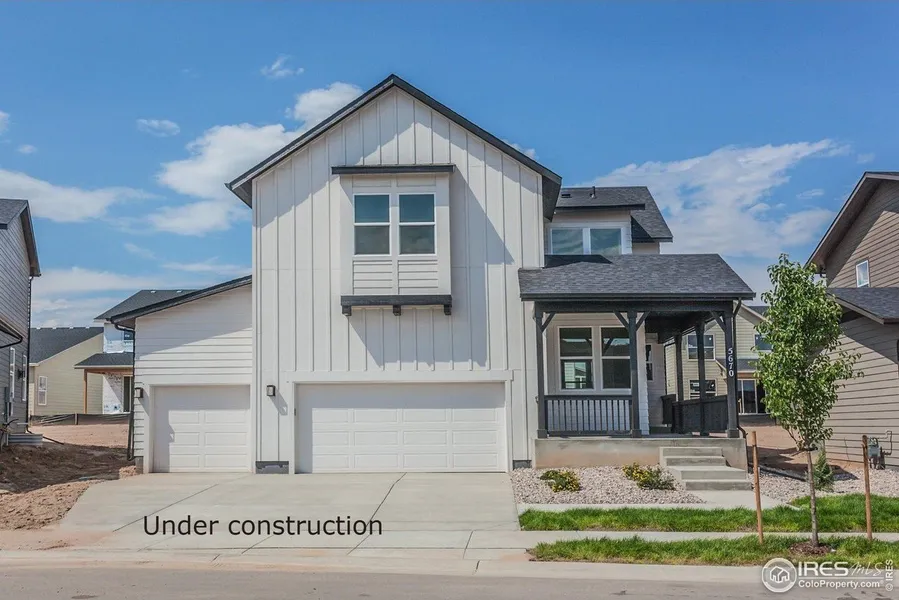 Under construction. Twain floor plan by Hartford Homes in Prairie Song. New construction. Two-story. As you enter the home from the front door, there is an office/flex space. The kitchen, dining and living room flow seamlessly together with an open concept. S. s. dishwasher, electric induction cooktop, double oven, hood, microwave. Chai latte painted maple cabinetry w/ soft close doors and drawers. Quartz countertops throughout. Electric fireplace w/ stone fireplace surround. Vinyl plank flooring in entry, kitchen, dining, baths, laundry, study/flex space and living room. Vaulted ceiling in master. 3 additional bedrooms, laundry and loft. 3 car garage w/ 8' garage doors, service door and keypad. Bench w/ cubbies and coat hooks off of garage entry in home. Covered patio. Buyer to verify schools, taxes, sqft, etc. $125 monthly metro district o & m fee. $415 annual non potable fee to be paid to metro district. PHOTOS FROM A PREVIOUSLY BUILT HOME AND THEREFORE MAY DEPICT DIFFERENT FINISHES. ASK ABOUT CURRENT LENDER OR CASH INCENTIVES.