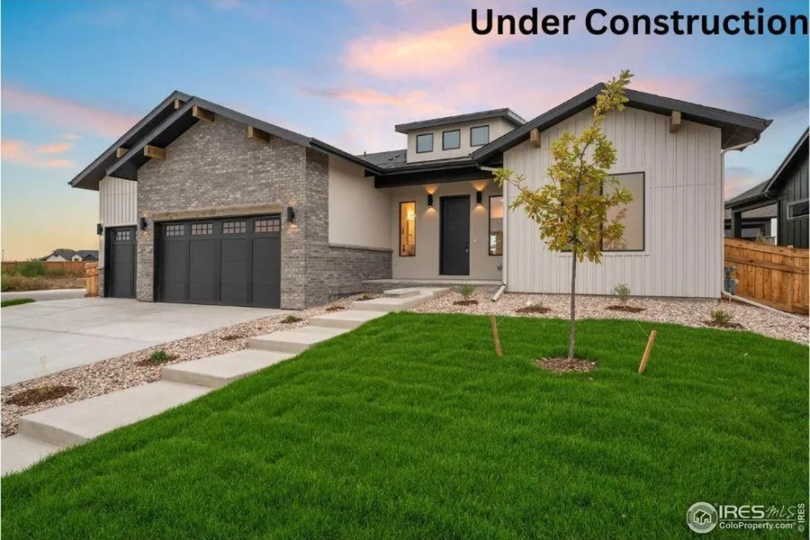 Located in the peaceful Sunfield community with no HOA, The Copper offers convenient single-story living and a true Colorado lifestyle. With a three-car garage, finished basement, and covered patio, this home delivers thoughtful design, versatile space, and high-quality finishes that are ready to enjoy from day one. Designed with warm wood tones and natural textures throughout, this home blends modern comfort with inviting character. At the heart of the home, the gourmet kitchen features rich wood cabinetry, quartz countertops, a gas range, and matte black fixtures. Stainless steel appliances are included so you can start cooking and entertaining the moment you move in. The kitchen flows into the vaulted great room, where oversized windows fill the space with natural light, and a custom-tiled gas fireplace with a wood mantle creates a warm, welcoming atmosphere. Enjoy the outdoors year-round from the covered patio or west-facing front porch, perfect for watching Colorado's colorful sunsets. The primary suite offers a private retreat with a luxurious five-piece bath featuring a freestanding soaking tub, a spa-style custom-tiled shower, and a spacious walk-in closet. A modern open railing leads to the fully finished basement, which includes two additional bedrooms, a full bathroom, a wet bar, and a large recreation room ideal for entertaining, hosting guests, or family movie nights. Complete with full front and backyard landscaping and fencing, this home is truly move-in ready. With its thoughtful layout, quality finishes, and flexible spaces, The Copper captures the best of comfortable, modern Colorado living.
