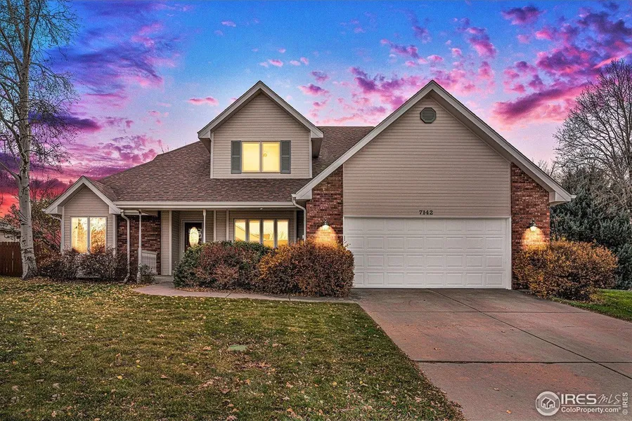 There's so much to love in this Canberra Commons home! Discover why this subdivision remains one of the most sought-after areas in Greeley. This two-story home with over 3000 square feet of living space offers a finished basement and a desirable main-floor primary suite complete with a luxurious full bath and walk-in closet. Gleaming hardwood floors grace the main level, enhancing the home's charm and inviting feel. Abundant windows fill this home with natural light, and the impressive, vaulted ceilings create a bright, spacious atmosphere. The charming kitchen with new appliances opens to the dining room, and the superb flow of the open floor plan is ideal for large gatherings or relaxing on those quiet cozy nights by the living-room fireplace. Enjoy beautiful Colorado days from the screened-in porch overlooking a stunning backyard with mature landscaping and plenty of room to relax. Upstairs, you'll find three spacious bedrooms. The main-floor laundry-conveniently located off the garage-included a washer and dryer for added ease. The expansive finished basement features a mirrored room perfect for a dance studio, home gym, or flexible hobby space. A finished two-car garage with built-in storage cabinets complete this fantastic home. Quick access to 34 and a great location by the golf course make this home a MUST SEE!