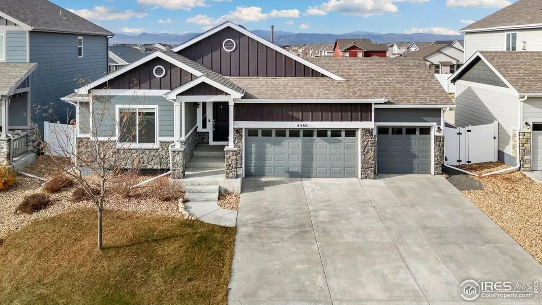 Beautifully designed ranch home the offers comfort, style, and convenience in all the right ways. This home enjoys a prime setting backing to a serene greenbelt, giving you added privacy, open space, and a natural backdrop that feels calm and inviting all year long. Step inside into a welcoming foyer that leads straight into the sun-filled main living area that features vaulted ceilings and engineered hardwood flooring throughout. The living, dining, and kitchen areas come together in one seamless layout, creating a bright gathering space that's perfect for relaxing, hosting, or simply just everyday living. The kitchen includes stainless steel appliances, granite countertops, and a center island with generous prep space for whipping up your favorite meals. Three bedrooms sit on the main floor, including a spacious primary suite featuring a 5-piece ensuite bathroom and a walk-in closet. The finished basement expands your living options even more. The large entertainment area can easily host movie nights, game days, fitness gear, or hobby spaces, while two additional bedrooms provide extra flexibility for guests or future customization. Outside, the fenced backyard adds another layer of Colorado living at its finest. A concrete patio offers a great hangout spot that is perfect for enjoying the fresh air and stunning Front Range views, complete with snow-capped mountains in the winter months. The 3-car garage and wide driveway provide all the space you need for vehicles, outdoor gear, or workshop projects. Convenience is always within reach, with a community park just minutes away and easy access to shopping and dining in Fort Collins, Timnath, and Windsor.