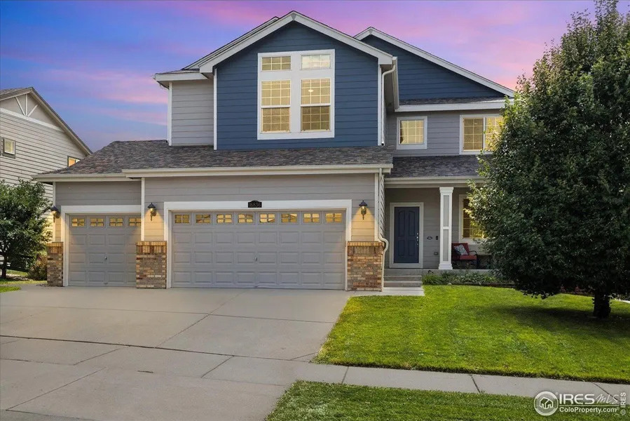 Charming and super clean! This Coyote Run home is move in ready with brand new carpet, newly refinished hardwood floors and new paint throughout. The main floor is open and welcoming creating a great space to entertain! The kitchen features 42 inch Alder cabinets, stainless appliances , slab granite counters and a generous pantry. It's open to the large, vaulted light filled living room and the formal dining room. Walk out onto the patio, with custom circular stamped concrete , firepit area and built in fountain. More great ways to enjoy the space and feel the charm of the neighborhood! Upstairs an oversized primary suite has ample space to enjoy a luxurious escape with walk in closet, dual vanities in the bath and mountain views to start your day! A flexible loft, easily converted into another bedroom, and two additional bedrooms that share a full bath allow the occupants to create the spaces fit for their lifestyle. A spacious basement allows the room to store or finish to fit your needs . Coyote Run is a friendly beautiful neighborhood that is close to highly rated Mead schools and easy access to other towns on the front range! Don't miss out on this beautiful home!