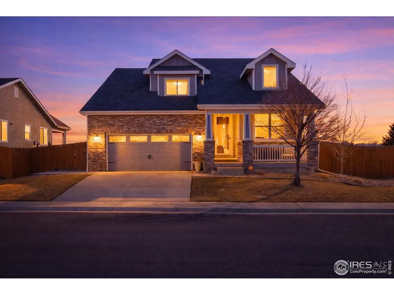 Thoughtfully designed and beautifully upgraded, this 4-bedroom, 2.5-bath home offers 2,389 finished square feet of light-filled living space on a 7,238 square foot lot with open space on two sides. Located on a quiet cul-de-sac, the property enjoys added privacy with only one neighboring home and direct access to a scenic greenbelt path leading toward downtown Frederick. The main level features 9-foot ceilings and an open-concept layout ideal for both everyday living and entertaining. A versatile main-floor bedroom provides flexibility for guests or a private office. The kitchen is equipped with Samsung appliances installed in 2022, including a gas stove, refrigerator, microwave, dishwasher, washer, and dryer. New COREtec Calypso Oak LVP flooring was installed throughout in 2022, along with a tiled laundry room. Upstairs, the spacious primary suite is joined by two additional bedrooms, a full bath, and a large loft with a picture window overlooking open space-perfect for a home office, reading nook, or play area. Second-floor mountain views add to the home's appeal. The backyard was fully enhanced in 2022 with new sod, irrigation, trees, river rock, mulch, retaining walls, a playset, and an expanded concrete patio and walkway. A dedicated trash storage area connects conveniently to the front driveway. Additional upgrades include a new Owens Corning roof and Sherwin-Williams Emerald exterior paint in 2023, plus an Andersen storm door. The 3-car tandem garage features impressive 12-foot ceilings and excellent storage potential, complemented by a large crawl space and under-stair storage. West-facing orientation allows for natural snowmelt in winter and warm, sun-filled summer evenings. Move-in ready with modern finishes and extensive improvements throughout.