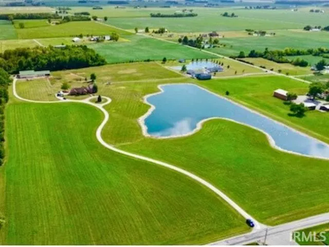 On this 27-acre retreat, every day feels like a getaway. It is a dream for horse enthusiasts. Located just 20 minutes from Fort Wayne, the airport, horse trails, Summit Equestrian Center, and 44 minutes from Salamonie Lake, this equestrian-ready facility includes a 60 x 150 ft., partially cemented barn with electric, water, five matted stalls, and a heated tack and feed room with a half bath. Shelter for the horses is accessible from the pasture. Also included are two newly fenced pastures and three hay fields that produce approximately 70 tons of high-quality hay per year. This serene escape features a meticulously maintained, custom-built 4,898 square-foot home with 4 bedrooms, 4 full baths, and 2 half baths. Upon entering the foyer, you'll notice tray ceilings in the great room and a wall of windows showcasing an amazing view of the property. A private office is located directly off the foyer for those who work from home. Reliable fiber optic internet is available. The gourmet kitchen includes new quartz countertops, an island, a coffee station, and stainless-steel appliances, including double ovens and a wine refrigerator. Ample storage is available with a large pantry and abundant cabinet space. Start your day in the breakfast nook with views of the horses and 12 miles of rolling farmland. For more formal occasions, there's a formal dining room. Off the kitchen is a newly refurbished two-tiered deck, perfect for grilling on the first level and dining on the second. The large master suite offers a private, quiet, luxury retreat. The spa-like bathroom features two separate sinks and cabinet storage areas, a linen closet, a large jetted tub, and a tiled walk-in shower. The walk-in closet is a must-see. Two additional bedrooms, each with walk-in closets, have their own sink, vanity, and linen closet. A shared Jack and Jill bathroom connects the two rooms. The full walk-out basement includes a theatre room, a large game and family area, a full bath, an exercise room, a wet bar, and even a brew room for the brewing enthusiast. Another master suite on this level comes with a walk-in closet and full bath. The unfinished area can be used for a workshop, additional storage, or whatever else you need. Patio doors lead to a large cemented patio with a fire ring and hot tub hookup. The 3.5-acre fully stocked lake is perfect for fishing, swimming, rowing, or even camping.