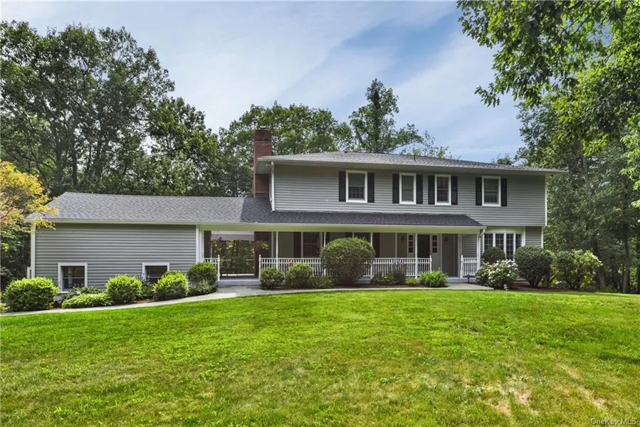 Inviting front porch colonial perfectly located at the end of a cul-de-sac on a country road. Classic time-honored design and stunning property distinguish this impeccably renovated home. Large, bright living/dining room with windows on 3 sides overlooking the beautifully landscaped property. Family room has welcoming wood-burning fireplace. Chef's EIK: floor to ceiling storage cabinets, granite counters, SS appliances, a large island and sliders out to generous outdoor deck with BBQ. Numerous work from home options with a desk/office area on every floor including the 450' 2 finished rooms over the detached garage. .Numerous outdoor spaces include: the covered breezeway, front porch, outdoor patio & back deck. Special features: hardwood floors, updated bathrooms, 2-zone central A/C, 4-zone hydro air heating , 550 gallons in above ground oil tanks & whole house generator. Situated in verdant and wooded area with space for a pool. Convenient to Armonk & Mt Kisco with Chappaqua train commute. Only 35 miles from NYC. This rarely available 5B/4.5b, CH colonial offers quality of life, room to play indoors and out, and ease of working from home