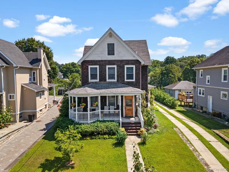 Enjoy the many perks of Peekskill living along the riverfront with its scenic park, flower-filled walking and biking paths, antique train station, and trendy restaurants just down the street from this beautiful Victorian home! Featuring spacious rooms, hardwood floors throughout, and antique touches from the turn of the century, this impressive property has so much to offer! With three bedrooms, two full baths, a lower level bonus room with half bath, plus an impressive walk-up-attic with partial river views and abundant light from every direction, this home lives like a five bedroom estate! Entertain with ease in the eat-in kitchen and formal dining room, with a split staircase and vintage archways leading into the sunlit living room. Relaxation is a dream as you listen to the song of the birds and the breeze on the quaint covered front porch, the peaceful covered rear porch, the private gravel patio, the grassy rear yard enveloped by flowers, and down the gated steps to the sunken rear terrace. Storage abounds outside thanks to the oversized 3 car garage, and inside with the unfinished basement/utility space. Centrally located, commute to the city with ease via the Peekskill Metro North Station only half a mile west, or the nearby Cortlandt Metro North station, Route 9A, and the Taconic Pkwy. Enjoy sunny days in the delightful Village of Peekskill nearby with an abundance of cafes, coffee shops, antique stores, and the landmark Paramount Theater. Come take a look today and make this amazing house your home tomorrow!