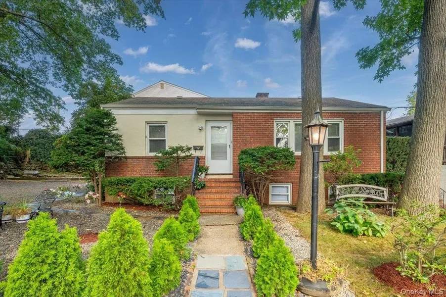 Nestled on a beautifully landscaped corner property in a quiet, tree-lined neighborhood, this impeccably maintained brick residence offers timeless appeal, modern comforts, and exceptional convenience-all just 25 minutes north of Manhattan. This sun-drenched home features a thoughtfully designed floor plan highlighted by a gourmet eat-in chef's kitchen, ideal for culinary enthusiasts and perfect for hosting. The spacious living room provides a warm and inviting space to relax or entertain, while the generously sized primary bedroom offers excellent closet space and comfort. Two additional bedrooms provide flexibility for family, guests, or a home office. Immaculate throughout, the home showcases custom crown moldings, designer trims, new flooring, and quality finishes that speak to meticulous care and attention to detail. The fully finished lower level offers versatile living space, perfect for extended family or guests, and can serve as a large family room, recreation room, or a potential fourth bedroom. A beautifully appointed full bath completes this level, adding to its functionality and charm. Outside, enjoy a meticulously maintained exterior, featuring an oversized driveway, a detached garage, a private patio ideal for entertaining, and a unique rooftop terrace above the garage-a perfect spot to relax and unwind under the open sky. Ideally located close to major highways, public transportation, parks, and the Cross County Shopping Center, this home is a commuter's dream, offering a seamless blend of suburban tranquility and city accessibility. This is a rare opportunity to own a turnkey home that combines luxury, comfort, and convenience in one of Westchester's most sought-after communities.
